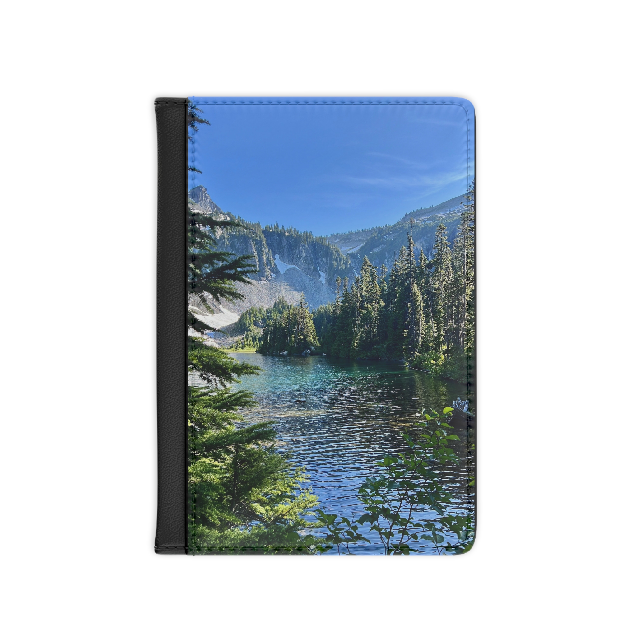 This practical passport cover features a photo taken on the trail to Snow Lake in Mount Rainier National Park — a spot well-known to hikers for its clear water, alpine air, and rugged beauty. Made from cruelty-free faux leather, it’s lightweight, secure, and built for real-world travel — whether you’re headed through airport security or out on a weekend hike.